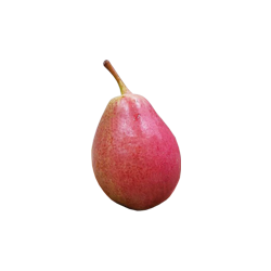 Egg-shaped pear with right blushed skin. Sweet and juicy flavour, excellent eating quality