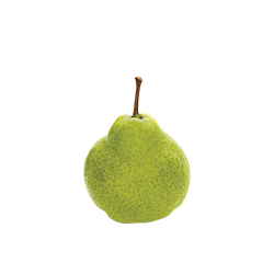 A bulbous, wide-bottomed pear green skin that ripens to a light yellow. A sweet and juicy white flesh with a smooth texture – a classic.