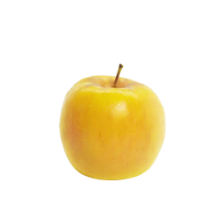 A bright yellow apple with slight rustic look and a firm, crisp, well balanced aromatic flavour.
